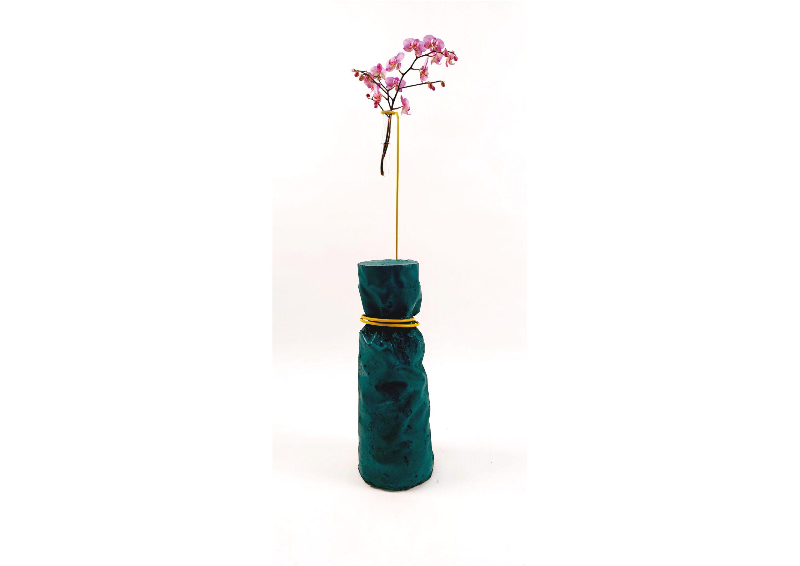 I made this side table with a bunch of contrasting elements. When moulding a heavy base, I gave it a soft textile-like texture. The exaggerated squeeze on top of it shows the ease with which the floating flower manipulates the concrete. It gives a feeling of almost a primal process of nature, when – over time – a fragile plant can crush stone.