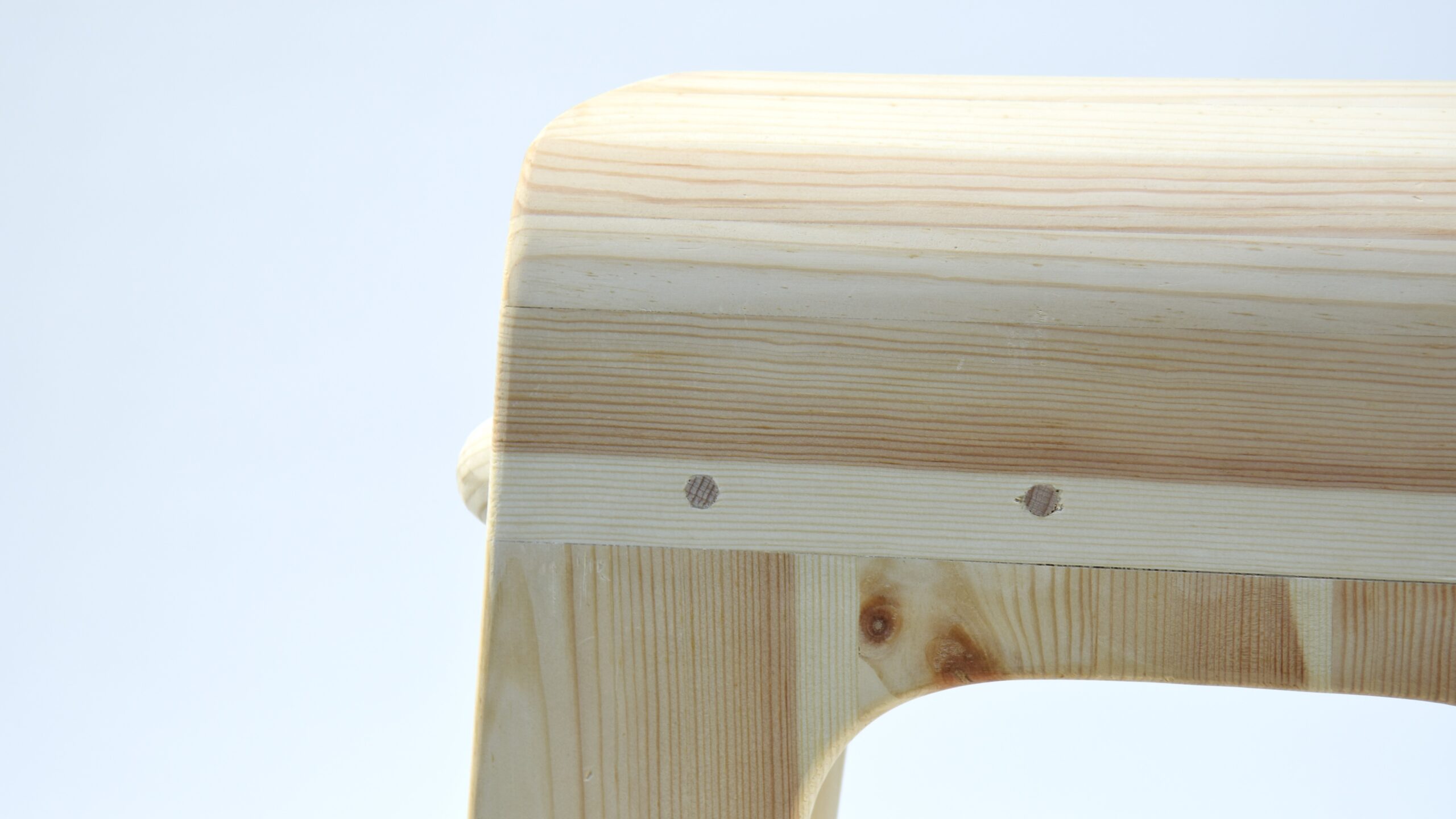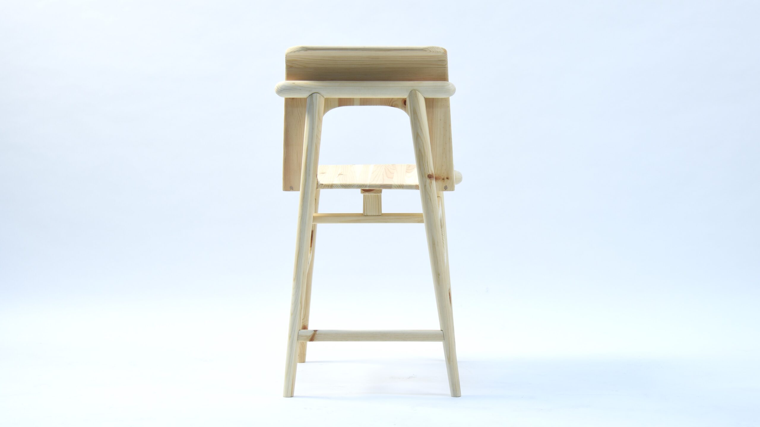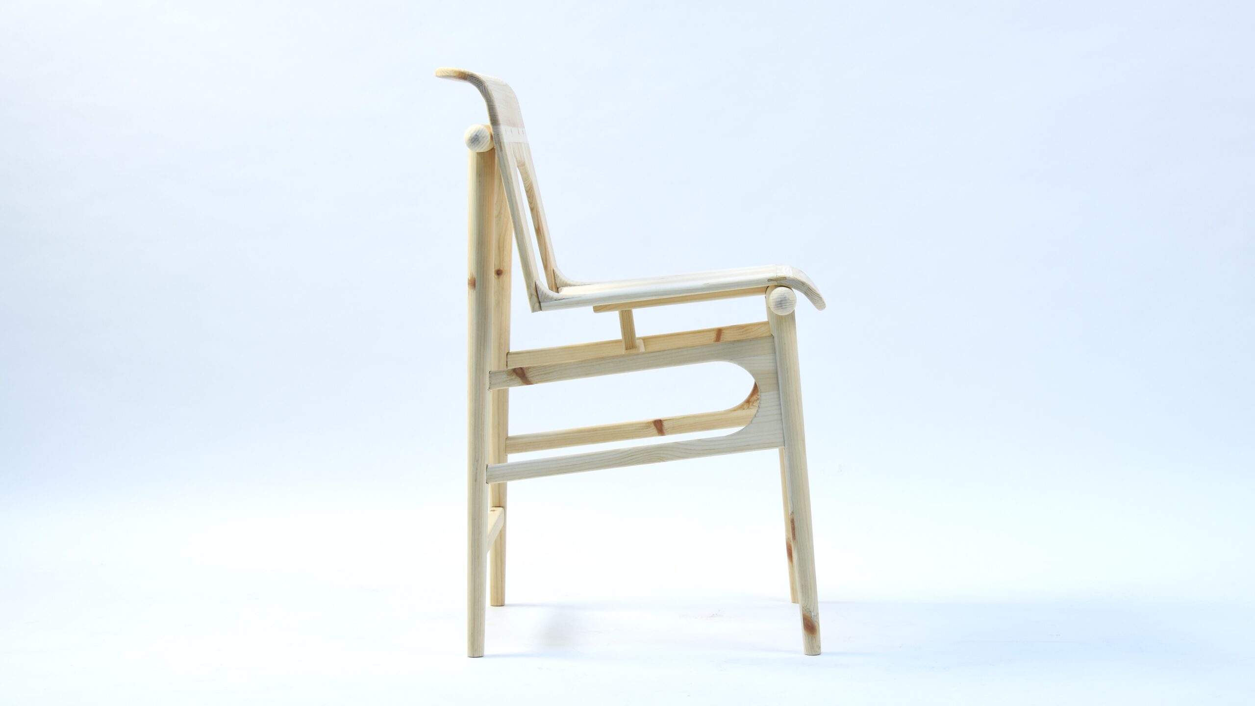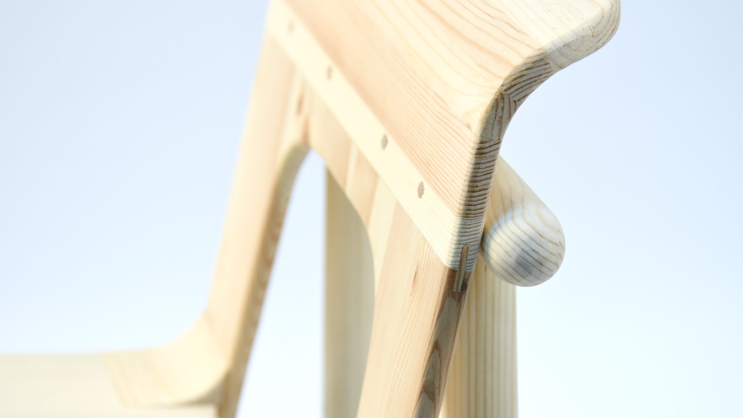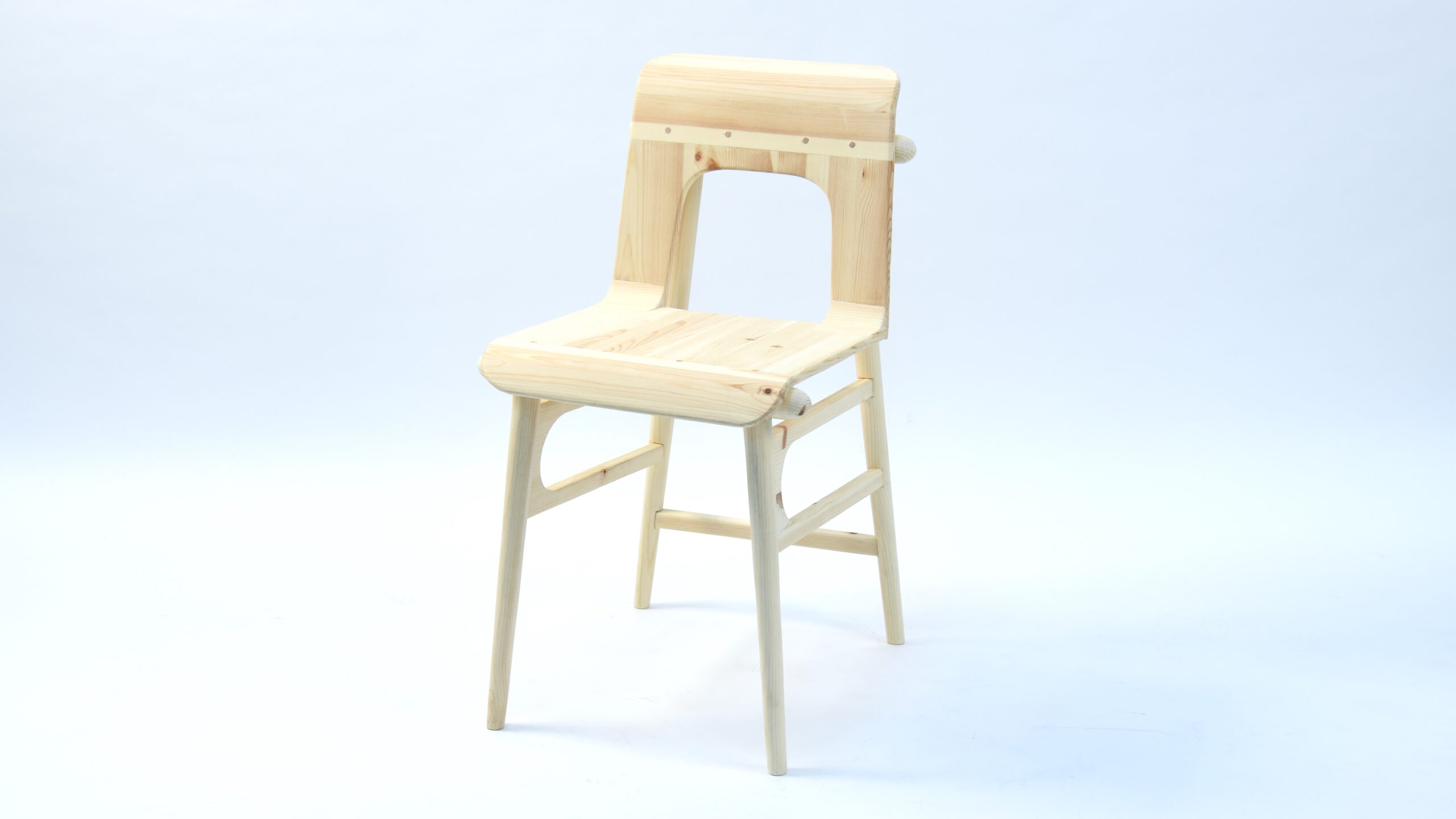 The concept raised a technical difficulty, due to the material requirement – the chair could use nothing but spruce planks. Therefore, the additional support of the seat was necessary. In the end, though, I believe I achieved the desired look pretty closely.